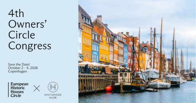 Save the Date: Vom 2. bis 4. Oktober findet der Owners' Circle Congress auf der Insel Seeland vor Kopenhagen statt. Die Veranstaltung wird von EHH gemeinsam mit der dänischen Hauseigentümervereinigung Historiske Huse organisiert. Der Owners' Circle bietet auf europäischer Ebene eine Plattform, auf der sich Eigentümer privater historischer Häuser über Erfahrungen und Herausforderungen austauschen und neue Freundschaften über die Landesgrenzen hinweg schließen können. Weitere Details folgen in Kürze.