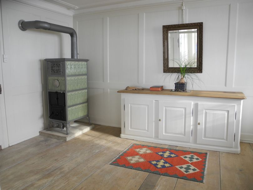 Der Keller ragt auf der Strassenseite fast ein Geschoss aus dem Boden, was dem Baukörper eine ungewöhnliche Höhe verleiht. Die gegen die Strasse orientierte Giebelfassade ist bis zum Dachansatz massiv gemauert. Die drei anderen Seiten bestehen aus einem feinmaschigen Fachwerk, das unter den Fensteröffnungen die für das Stammertal typischen Rautenmotive aufweist. lm lnnern haben sich die ursprüngliche Grundrısseınteilung und die reiche Ausstattung mit Täfern, Stuckdecken, Türen und Wandschränken fast unversehrt erhalten. Sieben Kachel-, Zylinder- und Tragöfen illustrieren die Entwicklung des Ofens zwischen 1828 und ca. 1940. Speziell erwähnenswert sind auch die Fenster. Sie stammen fast alle von 1828/1836 und bilden eines der grössten erhaltenen historischen Fensterensembles im Kanton Zürich.